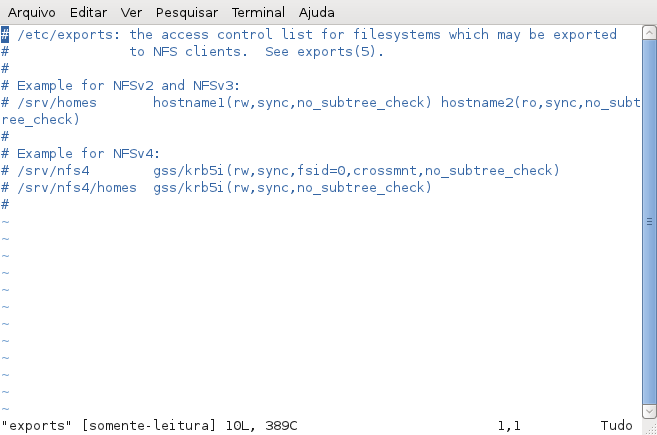 O processo de configuração do servidor é bem simples basta editar o arquivo exports localizado em /etc/exports