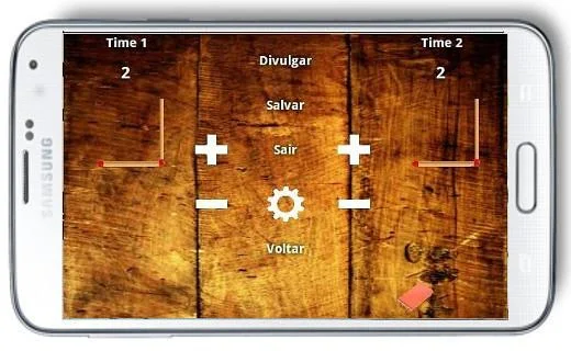 Exitem dois tipos destintos de marcador neste aplicativo, um de palitos e outro mais simples, caso você se canse do plano de fundo do marcador é possível alterar o mesmo na tela de configurações. Os temas vão desde uma simples mesa de madeira até um mesa de veludo vermelha.